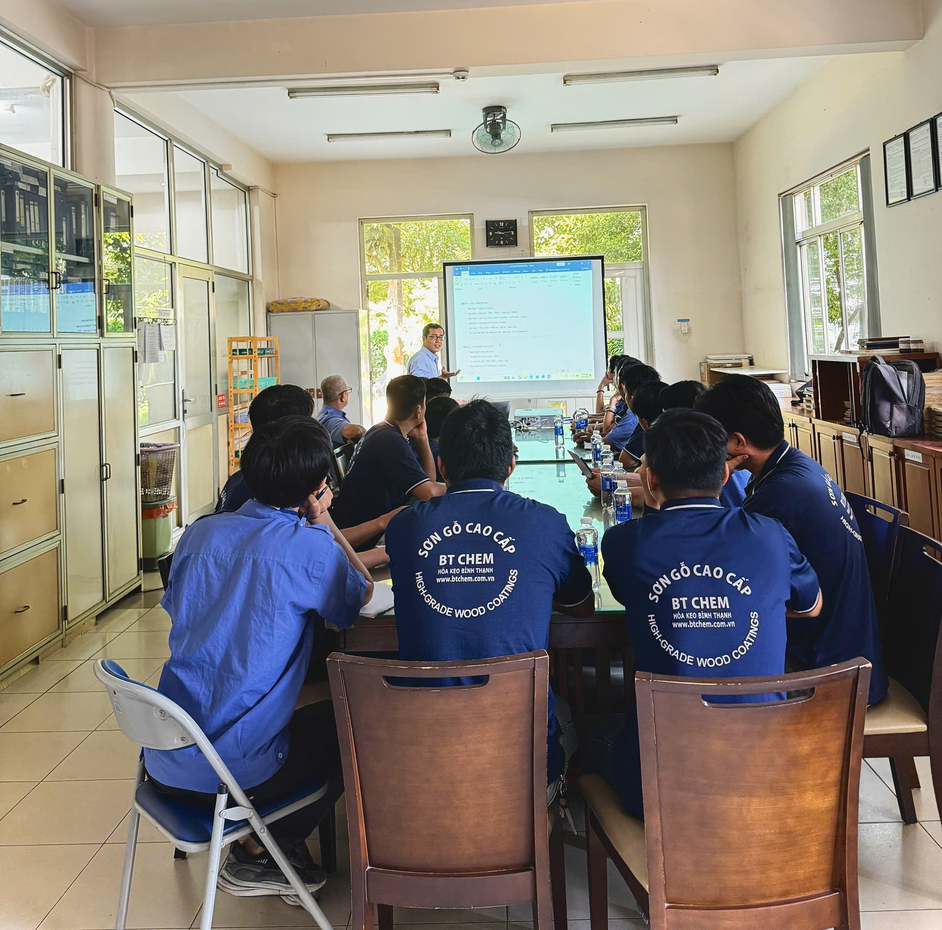 Chương trình được trực tiếp hướng dẫn bởi Phó Giám Đốc Ngô Đức Minh cùng với Trưởng phòng Kỹ thuật Lê Xuân Bảy – những người có nhiều năm kinh nghiệm trong lĩnh vực sơn và hoàn thiện bề mặt gỗ. Sự tham gia của Ban lãnh đạo và chuyên gia kỹ thuật khẳng định cam kết của Công ty trong việc chuẩn hóa quy trình và nâng cao chất lượng sản phẩm.